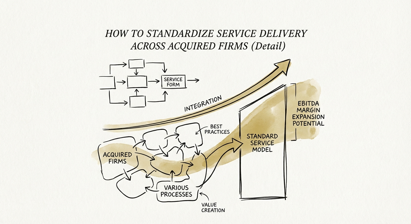 Research indicates that for mid-market platforms, rigorous standardization of delivery protocols can yield an EBITDA improvement of 160 to 280 basis points within 24 months. This comes from three specific levers: