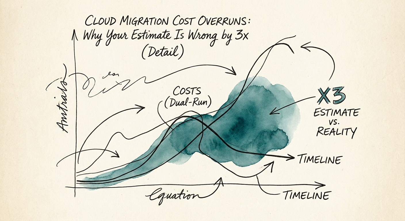 When we audit stalled migrations at Fortune 1000 firms, the budget overruns rarely come from compute instances. Everyone knows how to price an EC2 instance. The financial bleeding comes from the three categories that never make it into the initial SI (System Integrator) proposal.