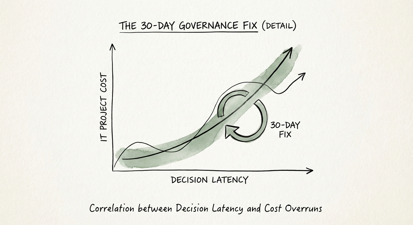 We call this the Decision Latency Tax. In traditional PE turnarounds, leadership often confuses activity with progress. They schedule monthly steering committees while the project team waits weeks for critical architectural decisions. This latency is fatal. According to the Project Management Institute, 47% of project failures are directly attributed to poor decision-making processes. Every day your project sits in decision purgatory, your IRR erodes.