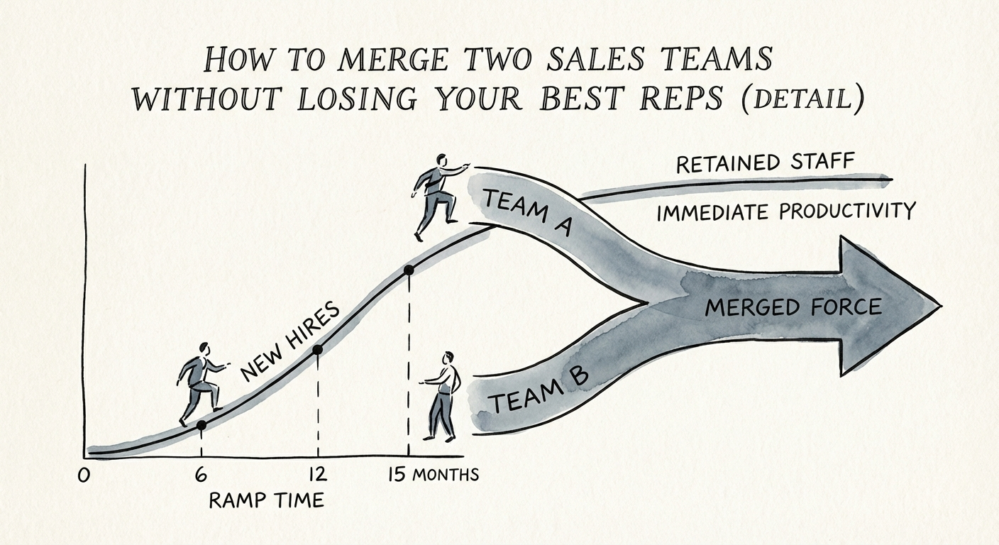 Territory conflict is inevitable. If you have two reps calling on the same Fortune 500 account, you have a problem. Use a "Clean Room" approach where a neutral third party (or the IMO) maps account overlap before the teams meet. Decisions on account ownership should be based on relationship strength (documented in CRM), not tenure or title. As detailed in our guide on Measuring M&A Integration Success, objective data is the only way to defuse political landmines.