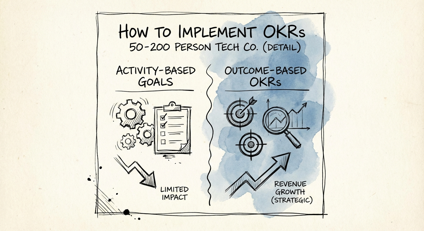 Announce the shift. Be explicit: "We are shifting from activity-based management to outcome-based engineering." Train your managers on the difference between a Task and a Key Result. A Task is "Write a blog post." A Key Result is "Drive 1,000 MQLs from organic search."