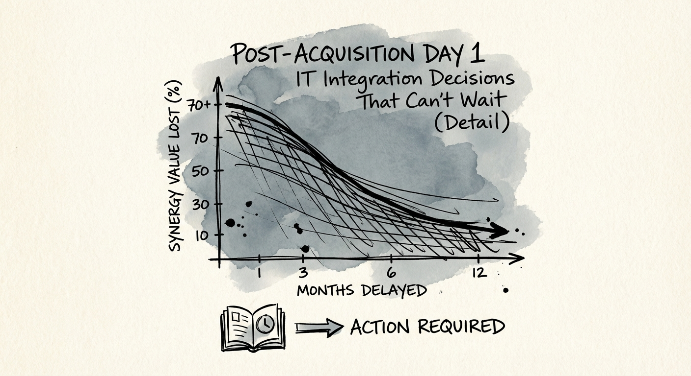 Many sponsors treat IT integration as a "Phase 2" problem, something to address after the new leadership settles in. This is a mathematical error. McKinsey data suggests that every month of delayed integration can cost up to 7% of targeted annual synergies. If your value creation plan assumes $5M in Year 1 synergies, a three-month delay in unifying the ERP or CRM doesn't just push that value back—it erases $1M of it permanently. In the world of EBITDA multiples, that’s millions in lost enterprise value at exit.
