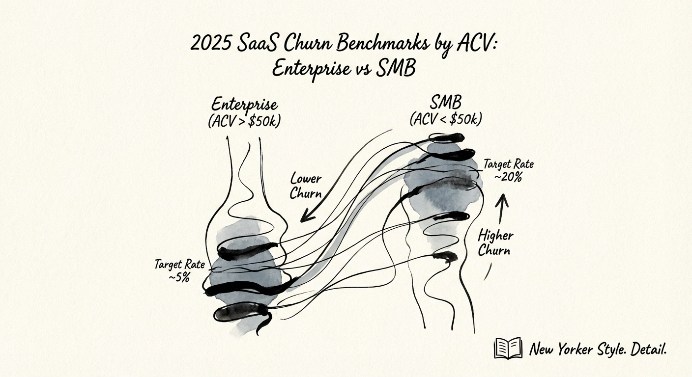Stop comparing yourself to generic "industry averages." A 5% annual churn rate is excellent for an SMB product but catastrophic for an enterprise platform. To diagnose your health, you must segment by Average Contract Value (ACV) and customer size.